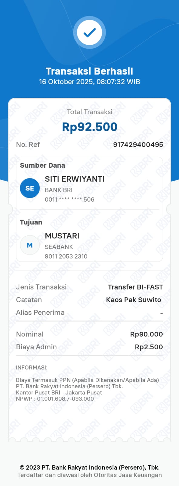 | 16 | Supriono | XL | Pendek | 1 | Warna Putih | Belum Bayar | Belum ada | Upload Pembayaran |