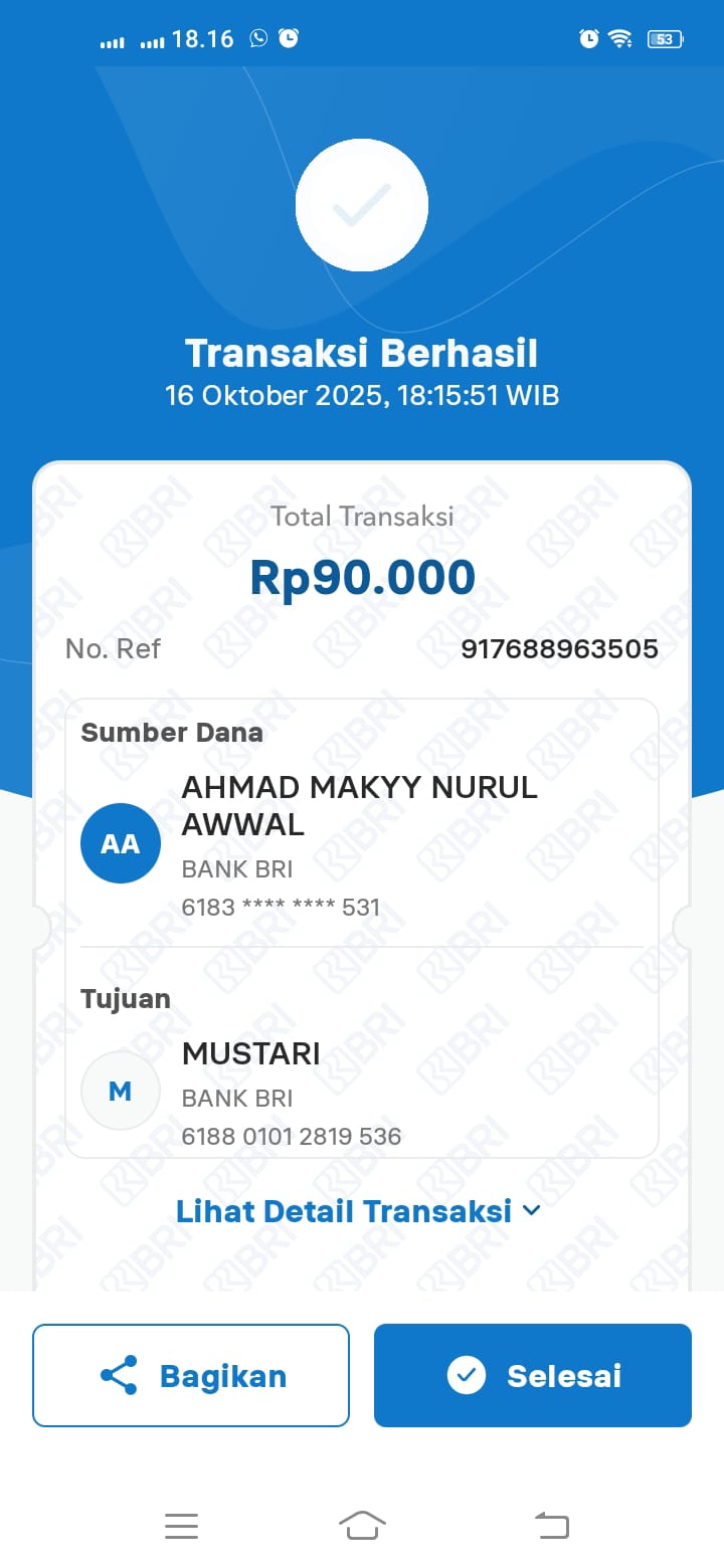 | 14 | Maslukhanah | L | Panjang | 1 | Warna Hitam | Belum Bayar | Belum ada | Upload Pembayaran |
